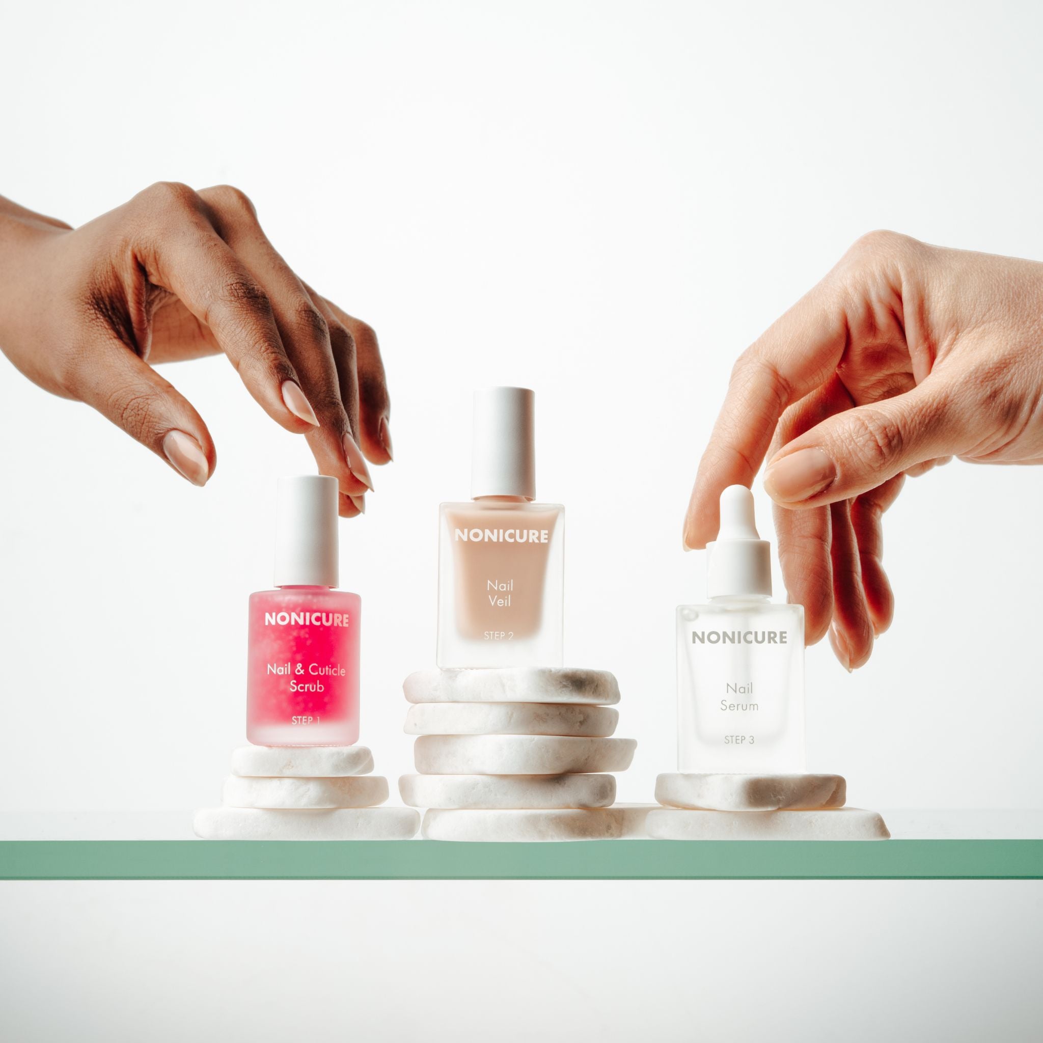 Nonicure™ system is for both damaged and healthy nails. It supports recovery if nails feel weak, and it also works as preventative care to maintain healthy nails before issues begin. Strong nails come from knowing when to stop and reset.